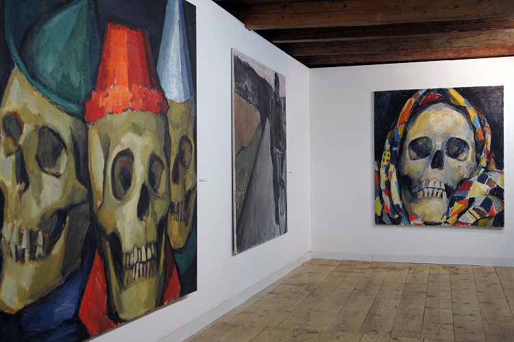 Josef Hnízdil- sochař a malíř odešel z Čech v roce 1974 nejprve do Francie. Po ročním studiu na Akademii des Beaux Art v Paříži odešel do New Yorku, kde žil a pracoval do roku 1991, kdy se rozhodl vrátit natrvalo zpět do Prahy. Hlavním tématem jeho soch a obrazů je lidská lebka, kterou v posledním desetiletí vyjadřuje autor jako synergii lebky a portrétu.
